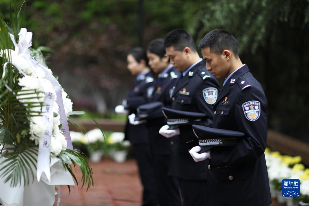 4月1日,在貴州省赤水市紅軍烈士陵園,民警祭奠紅軍烈士。