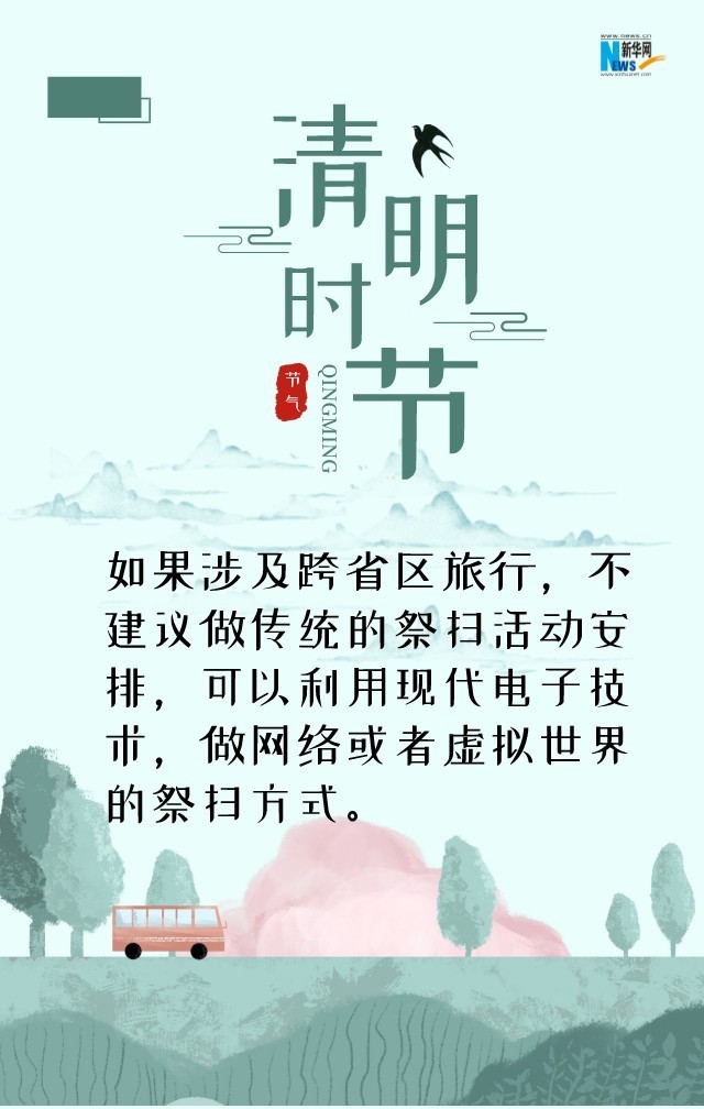 清明時節也是大家集中祭掃的時期。對此,吳尊友提示:如果涉及跨省區旅行,不建議做傳統的祭掃活動安排,可以利用現代電子技術,做網絡或者虛擬世界的祭掃方式。