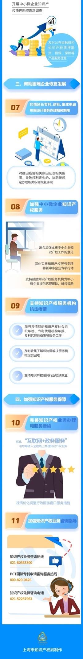 為加強助企紓困:酌情延長辦理期限,對申請辦理專利、商標、集成電路布圖設(shè)計等事務(wù),確因疫情相關(guān)原因延誤相關(guān)期限,導致權(quán)利喪失的,協(xié)助按規(guī)定辦理相關(guān)權(quán)利恢復手續(xù)。加強中小微企業(yè)服務(wù),出臺加強本市中小企業(yè)知識產(chǎn)權(quán)工作的意見,深化實施知識產(chǎn)權(quán)服務(wù)專精特新中小企業(yè)專項行動,支持鼓勵知識產(chǎn)權(quán)服務(wù)機構(gòu)為中小微企業(yè)提供代理援助、維權(quán)援助。支持服務(wù)機構(gòu)抗擊疫情,加強疫情期間知識產(chǎn)權(quán)社會組織年檢、專利代理機構(gòu)年報、專利代理師備案等服務(wù)工作,及時收集了解和協(xié)調(diào)解決知識產(chǎn)權(quán)服務(wù)機構(gòu)現(xiàn)實困難,支持知識產(chǎn)權(quán)服務(wù)行業(yè)吸納就業(yè)。
