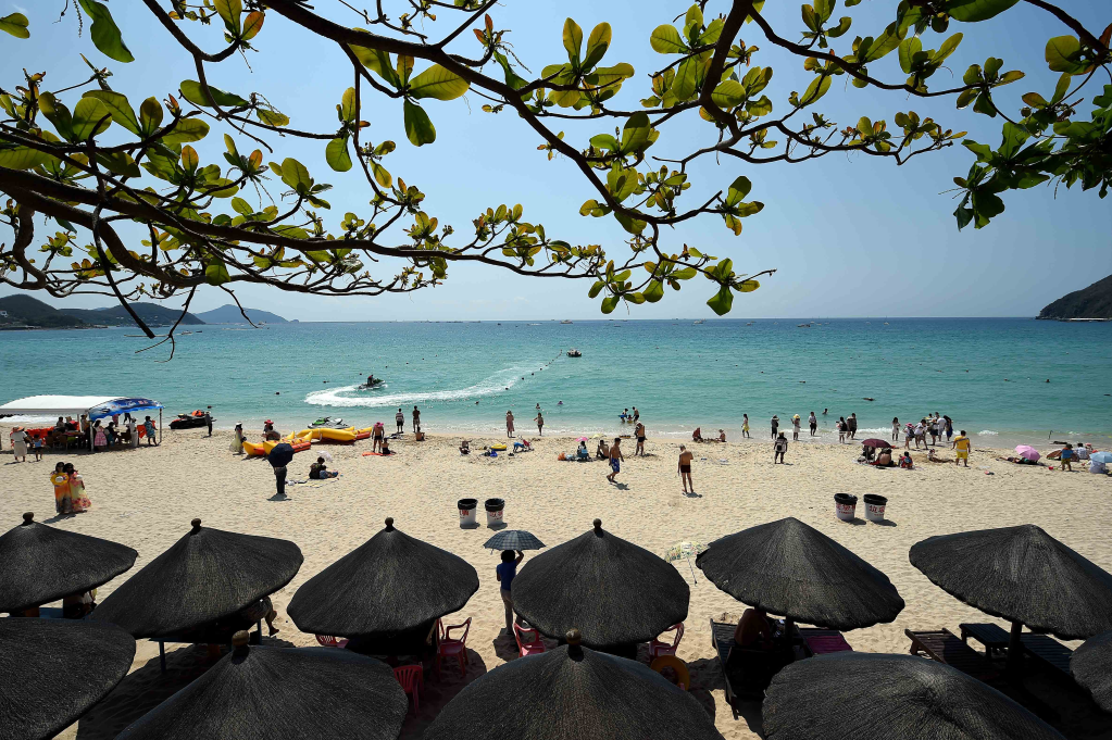 2020年10月6日,游客在三亞市大東海游玩。新華社記者 郭程 攝