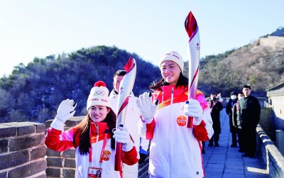北京冬奧會火炬在八達嶺長城傳遞。新華社發