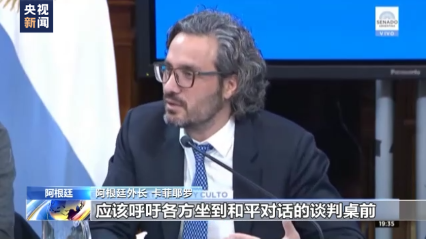 阿根廷外長 卡菲耶羅:我們認為,應該呼吁各方坐到和平對話的談判桌前,通過國際協商機制,相關國際條約以及外交手段等解決俄烏沖突。到目前為止,聯合國安理會尚未通過任何有關制裁俄羅斯的決議,因此,阿根廷政府也不會對俄羅斯采取任何制裁措施。阿根廷不支持將俄羅斯驅逐出二十國集團的制裁措施,因為我們認為這是個多邊主義問題需要全球各國共同協商。