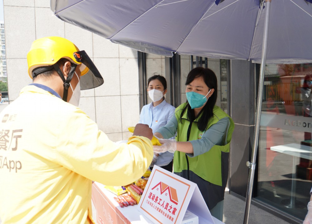 “流動(dòng)務(wù)工人員之家”分別在商超賣場(chǎng)、餐飲商區(qū)設(shè)置“小哥能量加油站”,在快遞、外賣站點(diǎn)設(shè)置“小哥能量自助補(bǔ)給站”,組建青年志愿服務(wù)隊(duì),于午、晚間用餐高峰時(shí)段,用最便捷高效的方式為外賣騎手、快遞小哥提供礦泉水、面包、N95口罩、免洗消毒液等物資,以及政策咨詢服務(wù),發(fā)放“人力社保快速響應(yīng)卡”,確保新業(yè)態(tài)勞動(dòng)者權(quán)益能夠響應(yīng)及時(shí)、調(diào)處到位、保障有力。