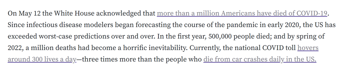 文章稱,疫情在美國暴發的第一年,有50萬美國人死于這種疾病;到2022年春天,100萬的累計死亡人數已經成為可怕但無可避免的事實。