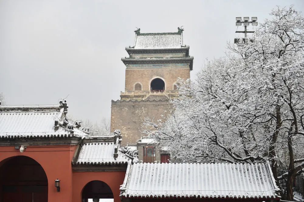 雪后的北京鐘樓(2020年1月6日攝)。新華社記者 陳鐘昊 攝