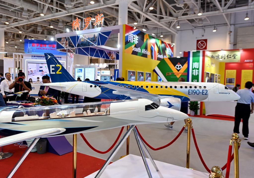 2021年9月8日,2021金磚國家新工業革命展在廈門開幕,這是在展覽上拍攝的參展飛機模型。(新華社記者林善傳攝)