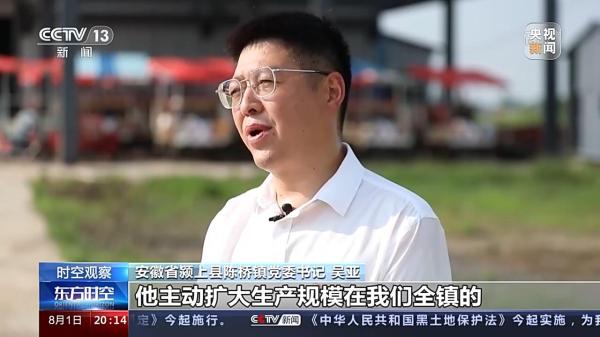 安徽潁上縣陳橋鎮(zhèn)黨委書記 吳亞:他主動(dòng)擴(kuò)大生產(chǎn)規(guī)模在我們?nèi)?zhèn)的示范帶動(dòng)作用是非常明顯的,如果我們鎮(zhèn)有十個(gè)八個(gè)像老蔡這樣的糧食經(jīng)紀(jì)人,新型經(jīng)營主體,那么全鎮(zhèn)6.5萬畝耕地都種上優(yōu)質(zhì)專用小麥也是指日可待了。
