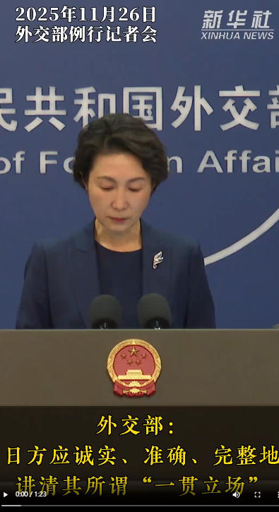 當(dāng)日例行記者會上,有記者問:11月25日,針對日本政府對“存亡危機(jī)”的認(rèn)定標(biāo)準(zhǔn)是否維持不變,日本政府內(nèi)閣決議通過答辯書,稱日本首相高市早苗的國會答辯“不改變?nèi)毡菊囊回灹觥保瑥?qiáng)調(diào)“政府將根據(jù)事態(tài)的具體情況,綜合判斷所有信息”“政府立場完全維持不變,沒有修訂和再研究的必要”。答辯書還稱,臺灣海峽的和平穩(wěn)定對日本的安全保障和國際社會整體的穩(wěn)定非常重要,期待通過對話和平解決問題。中方對此有何評論?