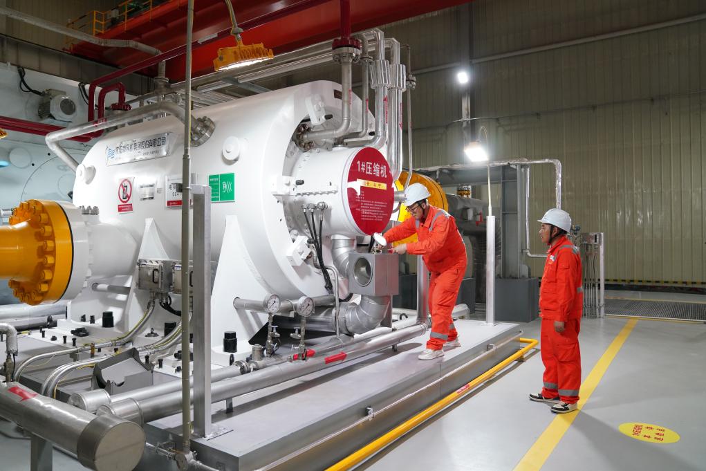 2025年7月9日,在“北氣南下”能源大通道黑河首站壓縮機房,綜合維修工人對壓縮機關鍵儀表進行維修作業。新華社記者 王松 攝