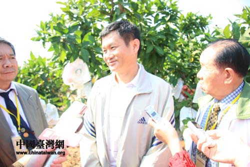 黃益豐在自己的蓮霧園里向兩岸記者介紹公司的發(fā)展情況