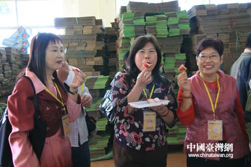 來自臺(tái)南縣的記者品嘗黃益豐農(nóng)場(chǎng)里出產(chǎn)的蓮霧贊不絕口