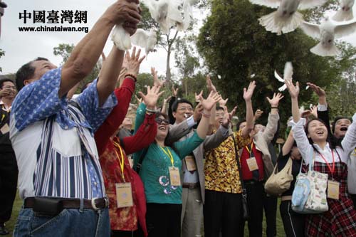 中國(guó)臺(tái)灣網(wǎng)12月2日三亞消息 昨天上午,參加“兩岸媒體海南行”采訪(fǎng)活動(dòng)的記者抵達(dá)三亞南山文化旅游區(qū)參訪(fǎng)。來(lái)自臺(tái)灣媒體的記者與大陸媒體的記者在南山“梵鐘苑”共同撞響“和平鐘”,共同放飛“和平鴿”,共同種下“和平樹(shù)”,并參加了南山寺高僧舉行的兩岸和平法會(huì),共同為兩岸和平,人民安樂(lè)祈福。(李杰)