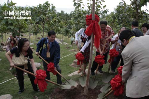 兩岸記者共同種下象征和平的菩提樹(shù)。