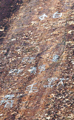 當地村民說,時?吹侥贻p人攀爬上去,爬到哪里,噴字就噴到哪里,“他們好像在比賽,看誰爬得高、噴字作記號!”