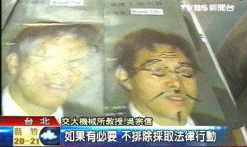 臺當局“新聞局長”謝志偉海報肖像遭惡搞,來源:臺灣“TVBS”