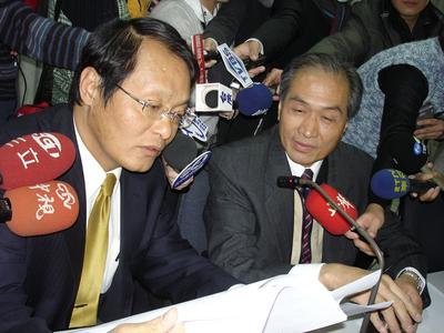 臺中市選委會新任代理主委薛秋發(右)3日主持臨時委員會議,以業務繁忙為由主動請辭代理主委。臺灣“中央社”記者郝雪卿攝