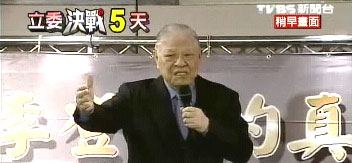 中國臺灣網1月7日消息 據臺灣TVBS報道,臺灣地區“立委”選戰進入最后倒計時,各個政黨都推出強打廣告,做最后沖刺,臺聯黨精神領袖李登輝,下午也推出新廣告。