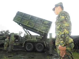 報道說,垂直發射陣地是第一次對外公開,同樣嚴禁拍攝,它設計成以四枚為一組的垂直發射室,軍方這次對媒體開放4間發射室,共16枚裝于固定發射架內的天弓一型導彈,從雷達發現敵機、完成檢測到進行接戰發射導彈,全程在5分鐘內。昨天開放的九五一旅,前身是勝利女神力士型防空導彈部隊,自1960年起擔任臺軍中高防空作戰任務;1993年9月開始換裝“中科院”自行研發的天弓導彈系統。(趙靜)