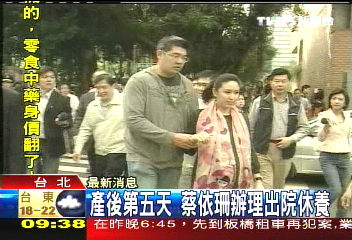 連戰兒媳蔡依珊今早出院 轉往坐月子中心(圖)