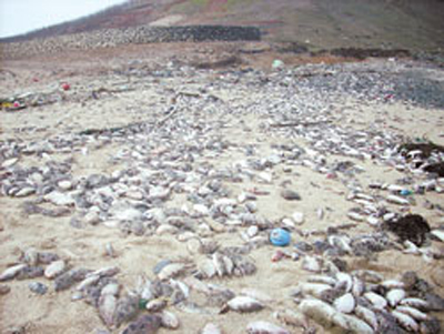 中國臺灣網2月18日消息 四面環海的澎湖望安離島,連日來四周海灘布滿了魚尸。“太可怕了,三四百公尺長的海灘全是魚尸。”望安中學校長洪嬡慧表示出她的驚駭,她說望安有7個海灘,只走了2處海灘,情況都一樣嚴重。