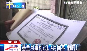 報道稱,臺“調查局”查出,黃姓主嫌涉嫌架設假網站,以“瑞士共同基金”名義,吸引民眾投資,一次一口是1000美元,最多是10萬美元。調查員說:“黃姓主嫌當初投資時說,你投資的本金里面,第一個月可以領回25%,第二個月可以領回另外的25%,4個月就可以回本,回本后你每個月還可以繼續領25%。”