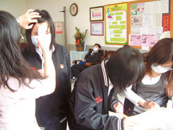 臺灣云林縣正心中學(xué)214名學(xué)生出現(xiàn)集體惡心及上吐及下瀉,學(xué)校健康中心校護(hù)忙著為學(xué)生檢查。(臺灣《中國時報》圖片)