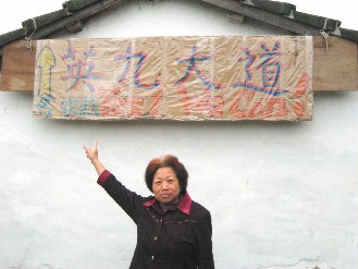 苗栗馬家莊暴紅,有民眾在家門外掛上“英九大道”路標(biāo)。(聯(lián)合報(bào)圖)
