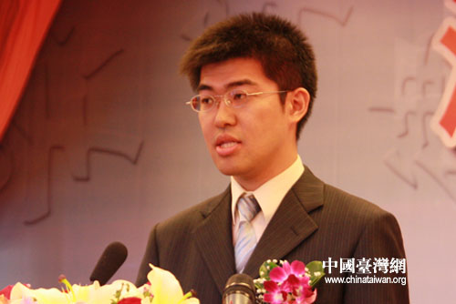 國家司法考試司司長丁露為謝啟大頒發職業資格證書。(中國臺灣網 張弛 攝)