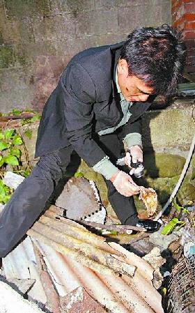 方姓少女被棄尸在防火巷內(nèi),殯葬業(yè)者昨至現(xiàn)場撿拾骨骸。圖片來源:臺灣《蘋果日報》