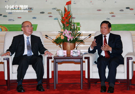5月26日上午,北京市委書記劉淇在人民大會堂北京廳會見中國國民黨主席吳伯雄率領(lǐng)的“中國國民黨大陸訪問團(tuán)”一行。(中國臺灣網(wǎng) 鐘寶華 攝)