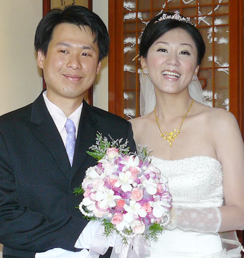 圖為新郎周柏村和新娘張芳雯。(圖片來源:臺灣《聯合報》)