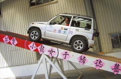 中國臺灣網6月29日消息 據臺灣《聯合報》報道,臺灣第一位駕駛吉普車高空走鋼索的女性特技表演者張芳雯,昨天嫁給自行車工程師周柏村,她的父親臺灣東方汽機車特技表演團團長張承志,特別安排“特技婚禮”送她出閣。她坐在父親旁邊,表演完蹺蹺板特技,再以半側懸空、單側兩輪在地上繞圈,毫無畏色。(羅煜明)