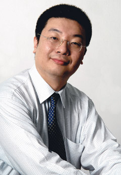 大陸分眾傳媒總裁江南春和出身臺中的鳳凰衛視主播陳玉佳。(圖片來源:臺灣《聯合報》)