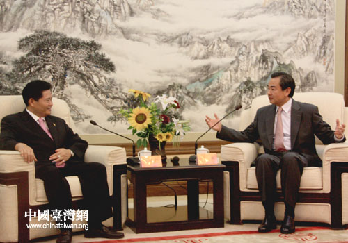 國臺辦主任王毅今天下午在京會見臺灣媽祖聯誼會參訪團。(中國臺灣網 張弛 攝)