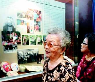 “慰安婦”阿嬤吳秀妹(左)與盧滿妹(右)今天上午出席“月光——‘慰安婦’生命故事影像展”揭幕記者會(huì),并共同參觀攝影展。圖片來(lái)源:臺(tái)灣《聯(lián)合晚報(bào)》