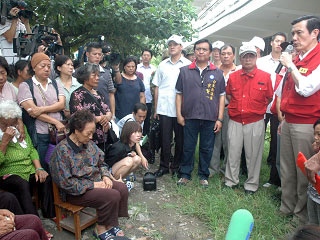據臺灣“中央社”報道,“莫拉克”臺風重創臺東,馬英九今天到臺東關懷災情,聽取相關單位有關太麻里潰堤和民宅農田損失,以及災民安置情況。