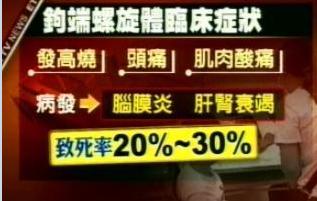 據(jù)臺灣“今日新聞”報(bào)道,萬丹鄉(xiāng)后灣村在8月17日爆發(fā)鉤端螺旋體病的疫情,之后附近的7個(gè)村鎮(zhèn)也陸續(xù)傳出疫情,據(jù)統(tǒng)計(jì),萬丹鄉(xiāng)通報(bào)的疑似案例有180例,全鄉(xiāng)陸續(xù)有90多人住院治療,確定是鉤端螺旋體病的有51人,目前還在住院觀察的有20人,3人住在加護(hù)病房。