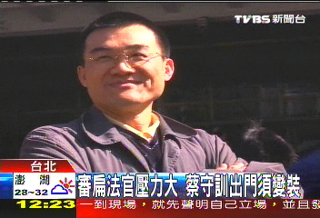據臺灣TVBS電視臺報道,法官蔡守訓承審陳水扁案的這段時間內,根本就完全改變了生活型態,原本就行事低調的他,因為家門口被拉布條抗議過,也有人在網絡上留言恐嚇,讓他的生活范圍縮小到辦公室跟家里兩個地點。