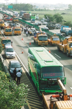 接連兩起車禍,回堵車陣更嚴重,統聯事故在下午3時許排除,槽車事故延至4時30分左右處理完,前后長達19小時。參與槽車處理的環保署毒災應變人員指出,毒災處理安全第一,不能像一般車禍求快,耗費時間是必然的。(芮文輝)