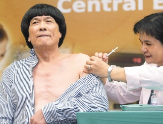 防疫大使豬哥亮接種疫苗。 來源:臺灣《聯合報》