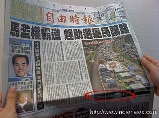 《自由時報》刊登馬英九車隊行駛高速公路的合成照片。來源:臺灣“今日新聞網”