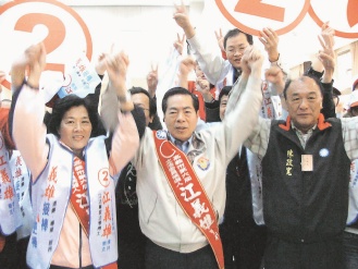 江義雄(右)四年前參選“立委”,他的妻子詹卿敏(左)全力相挺,不料他就職才十天,妻子卻因勞累過度引發(fā)腦溢血。 來源:臺灣《聯(lián)合報》