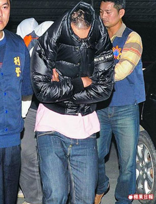 臺(tái)警方昨晚帶回涉嫌砍死人的嫌犯、臺(tái)軍現(xiàn)役軍人劉原汶(中)等5嫌犯漏夜偵訊。 來源:臺(tái)灣《蘋果日?qǐng)?bào)》