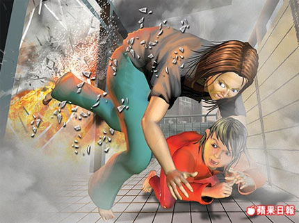 此時,夫妻及小女兒從三樓跳下,丈夫撞到自行車昏倒送醫(yī),妻子跳下后毫發(fā)未傷,并接住小女兒。她逃到巷口,以英語向鄰人大叫“Help! Help!(救命)”,鄰居立即報警。