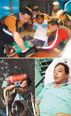 目前,受傷的“正升豐號”船長蔡清隆和兩名印度尼西亞漁工,在被臺灣搜救中心的直升機救起后,已經(jīng)由救護車送往醫(yī)院救治。據(jù)了解,船長的弟弟即輪機長蔡保明和另外兩名印度尼西亞漁工仍下落不明。蔡清隆說,失蹤的3人身上都攜帶有信號彈,若搜救直升機和艦艇靠近,3人應(yīng)該會立即點燃信號彈,現(xiàn)在距離失事不過才10幾個小時,3人生存機率的還很大。