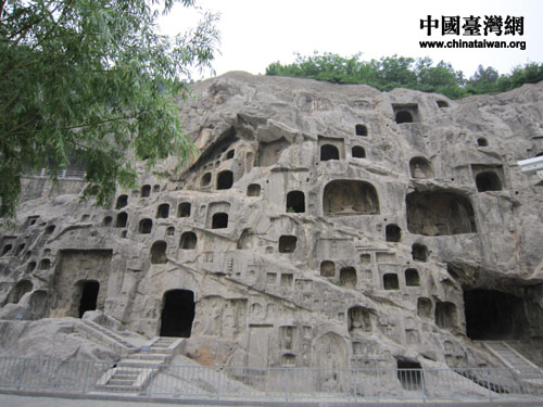 從遠(yuǎn)處眺望石窟,更覺壯美異常。(中國臺灣網(wǎng) 朱毅 攝)