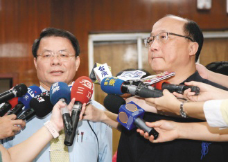 官警在槍擊現(xiàn)場(chǎng),臺(tái)中市長(zhǎng)胡志強(qiáng)(右)昨天上午表示,他第一時(shí)間不知情,并指警方報(bào)告疑點(diǎn)重重,他不愿為警方懲處背書(shū);晚間,胡木源(左)去職后,胡志強(qiáng)重申“看完報(bào)告,局長(zhǎng)不異動(dòng)都難!眻D片來(lái)源:臺(tái)灣《聯(lián)合報(bào)》