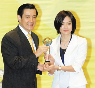 馬英九為李宛凌頒獎。 來源:臺灣《聯合報》