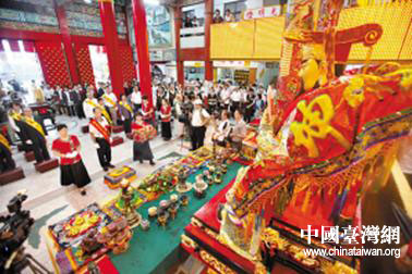 中國(guó)臺(tái)灣網(wǎng)6月28日臺(tái)灣消息 6月25日,來(lái)自洛陽(yáng)關(guān)林的兩尊“關(guān)圣帝君”神像運(yùn)抵臺(tái)灣高雄東照山關(guān)帝廟,并于當(dāng)日下午舉行了安座大典。臺(tái)灣立法機(jī)構(gòu)負(fù)責(zé)人王金平、臺(tái)當(dāng)局前法務(wù)部門負(fù)責(zé)人蕭天贊、高雄縣縣長(zhǎng)楊秋興、高雄市市長(zhǎng)陳菊、臺(tái)民意代表黃昭順、臺(tái)灣中華道教關(guān)圣帝君弘道協(xié)會(huì)總會(huì)長(zhǎng)郭有智、臺(tái)灣中華全球洪門聯(lián)盟總會(huì)長(zhǎng)劉會(huì)進(jìn)、臺(tái)北木柵指南宮主任高忠信等各界人士參加安座大典。