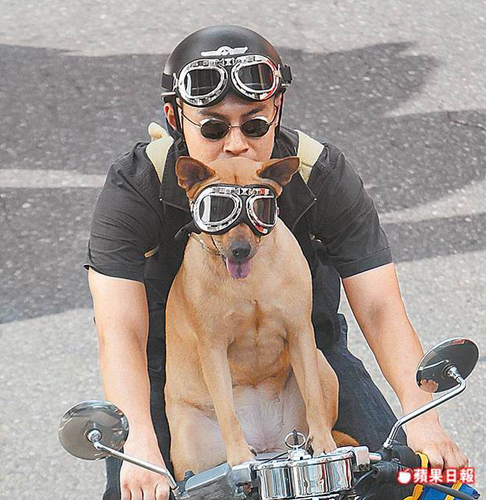 臺北市昨天高溫達(dá)攝氏37.1度,有外出民眾甚至為愛犬戴太陽眼鏡。圖片來源:臺灣《蘋果日報》